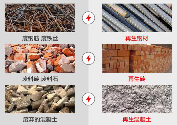 時產:100噸/時[1立方米=1.6噸],在破碎建筑垃圾混凝土固料時,要配置除鐵器,除去混凝土中的鋼筋。