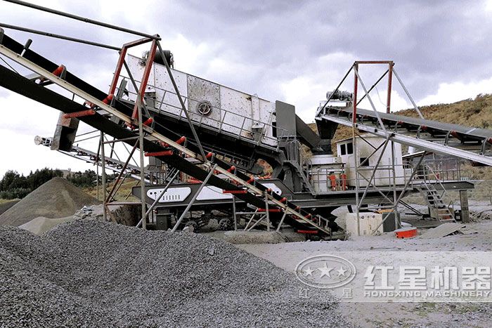 配置設(shè)備:移動破碎機(jī)、給料機(jī)、振動篩、皮帶輸送機(jī)