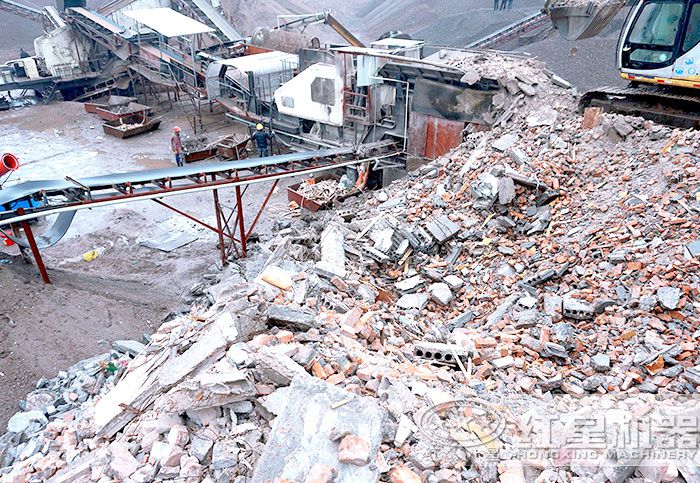 水泥塊粉碎機—紅星機器履帶移動破碎機用戶現場